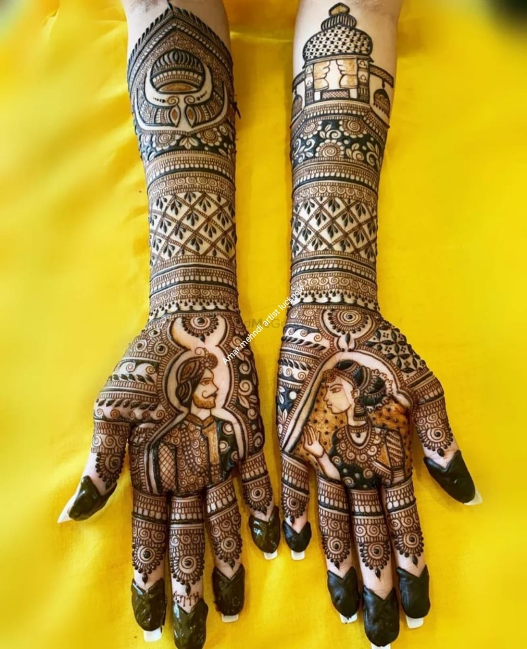 Explore our designer mehndi collection, where creativity knows no bounds. From personalized initials to intricate fusion designs, our artists excel in creating bespoke henna art that complements your style and personality.