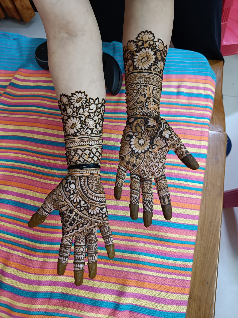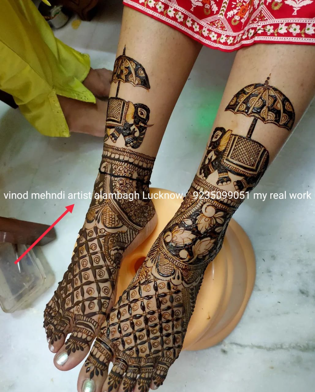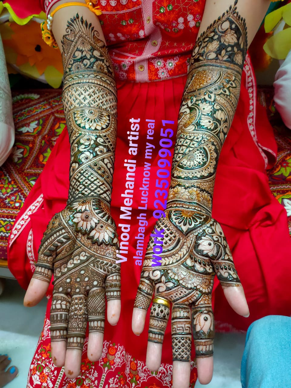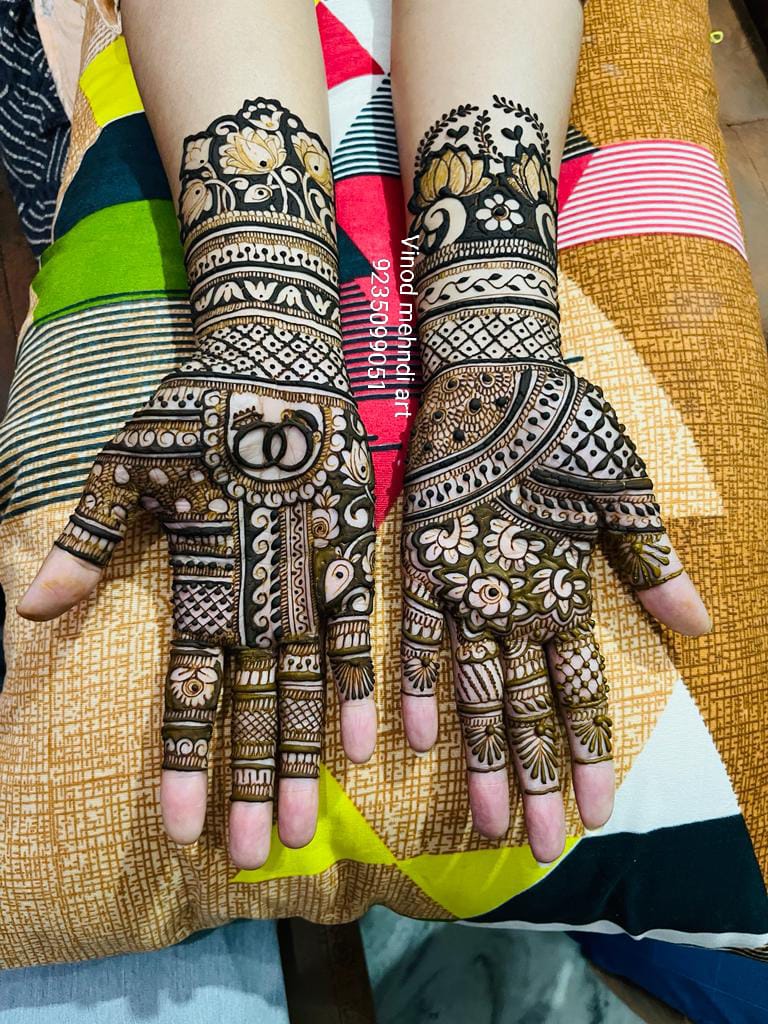 Our Mehndi designs come out intuitively with varied imagination without any reference to books. We apply our ability as a fashion designer to have Mehndi stripes on shoulder, upper arm, wrists and on back of the palms No Indian wedding is ever complete without Mehndi . Exclusive contemporary designs, exotic patterns by Bridal Mehndi Specialist. Vinod Mehandi Artist most liked feature is the speed with superior finishing & clarity for the Best Bridal Mehndi work. I am supported by a team of 18 experienced designers who are proficient in Bridal, Sparkle, Rajasthani, Arabic, Gujarati, Bombay, Hand & Foot Mehndi designs.